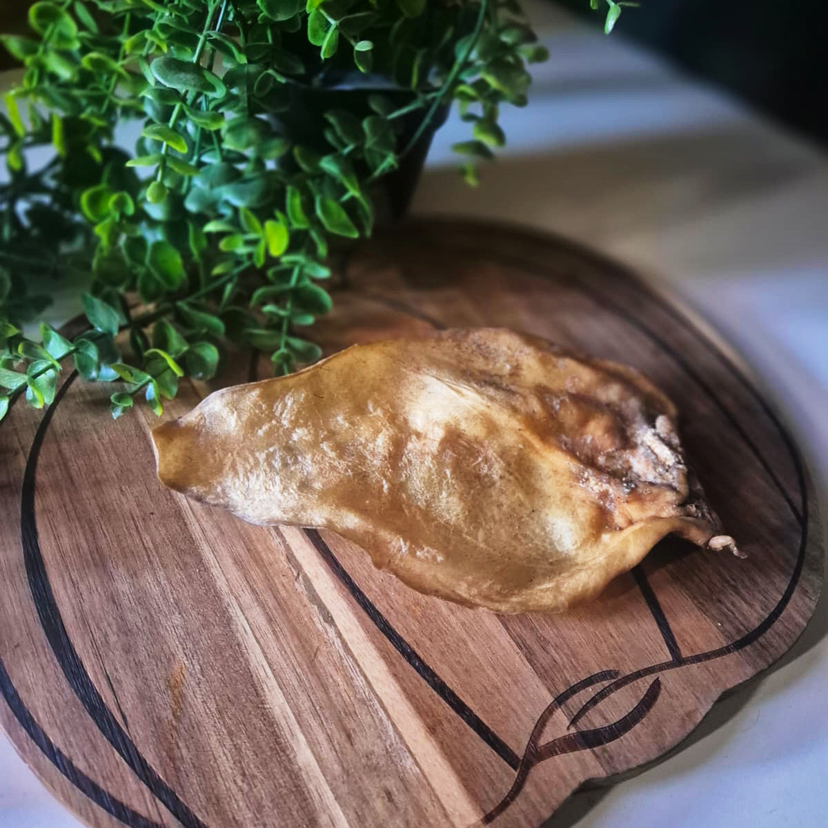 Large Cow Ear Flaps are 100% natural, air-dried treats made from premium beef ears. They are a lower-fat, longer-lasting alternative to pig ears, offering a softer chew that is gentler on the teeth, making them ideal for older dogs or dogs with sensitive teeth.